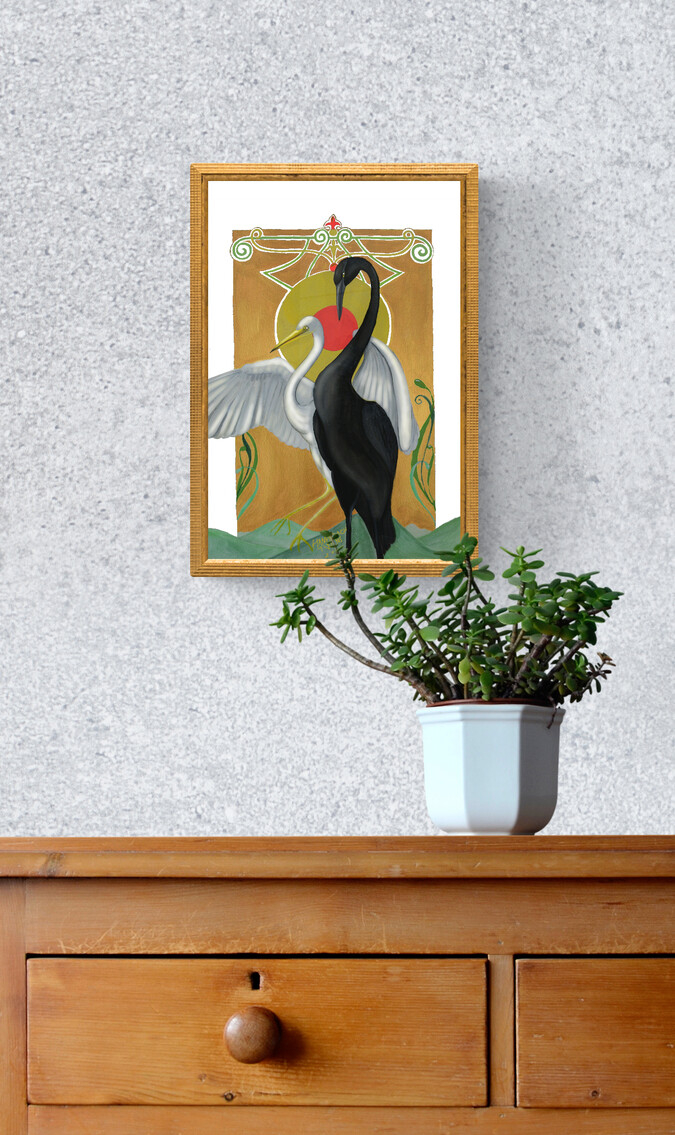 Druck von unserem Original „Kraniche“ – Acryl-, Aquarelle- & Ölfarbe auf Papier