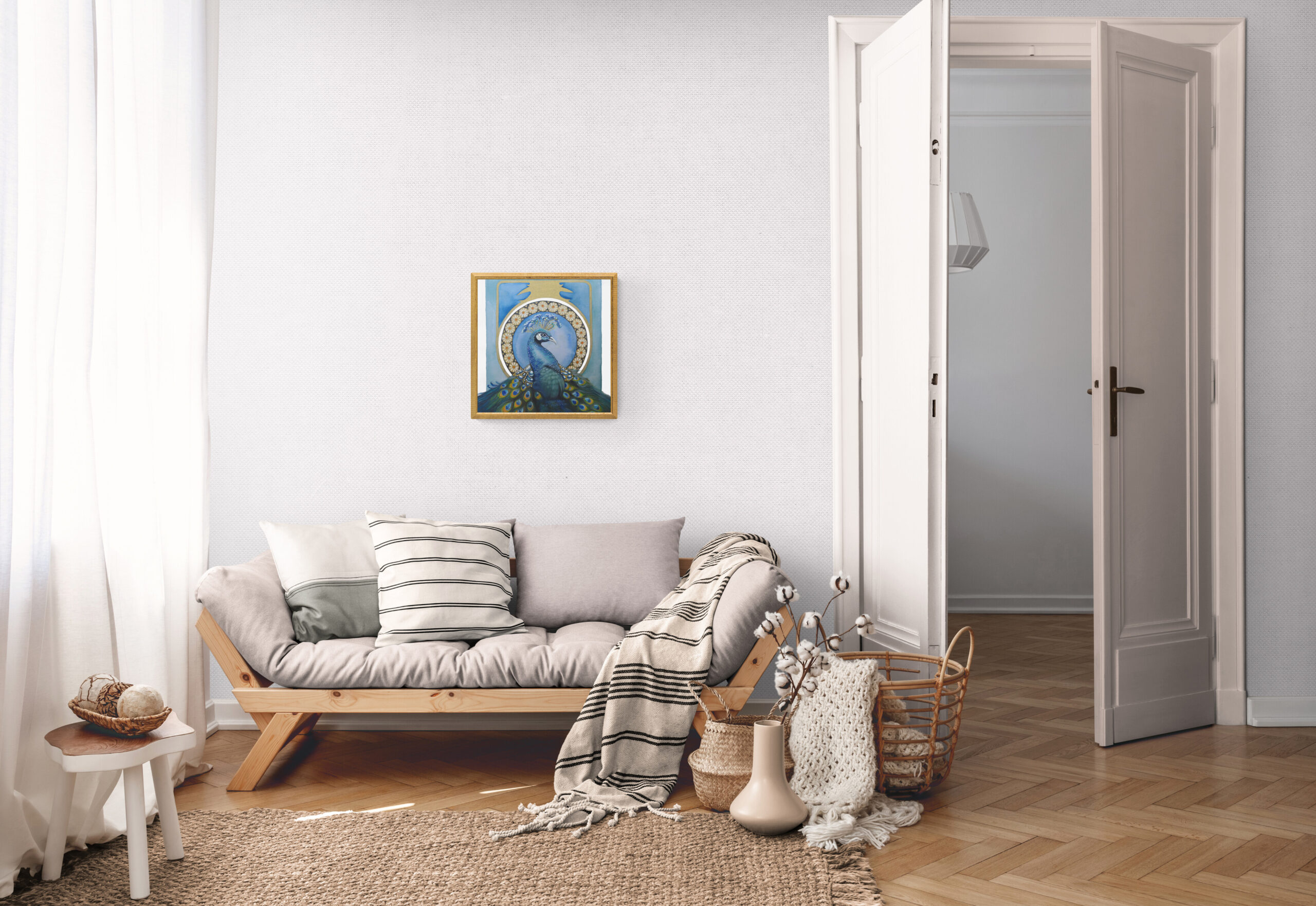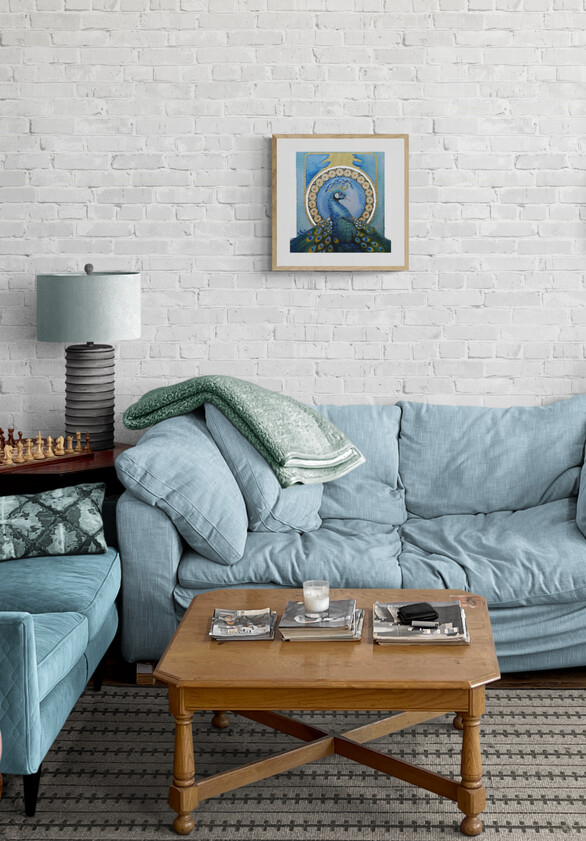 Druck von unserem Original „Pfau“ – Öl-,Acryl-& Aquarellefarbe auf Leinwand.